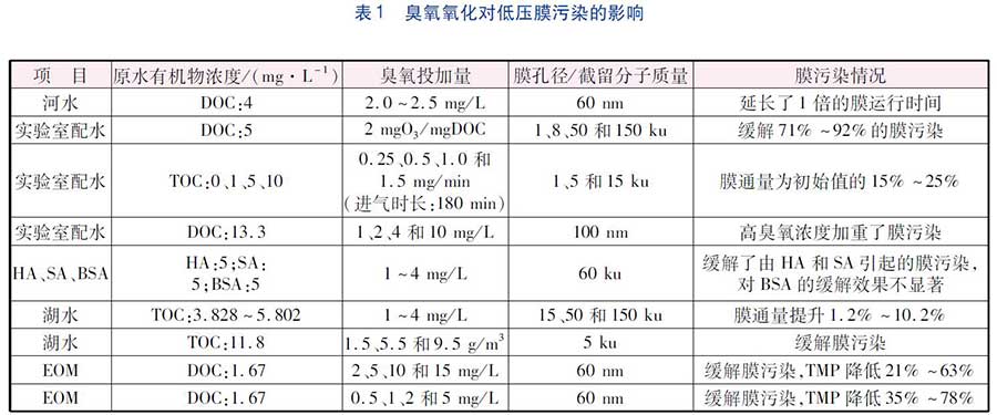 臭氧氧化技術在緩解低壓膜污染的研究