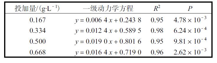表1 不同催化劑投加量對模擬草酸廢水降解動力學的影響